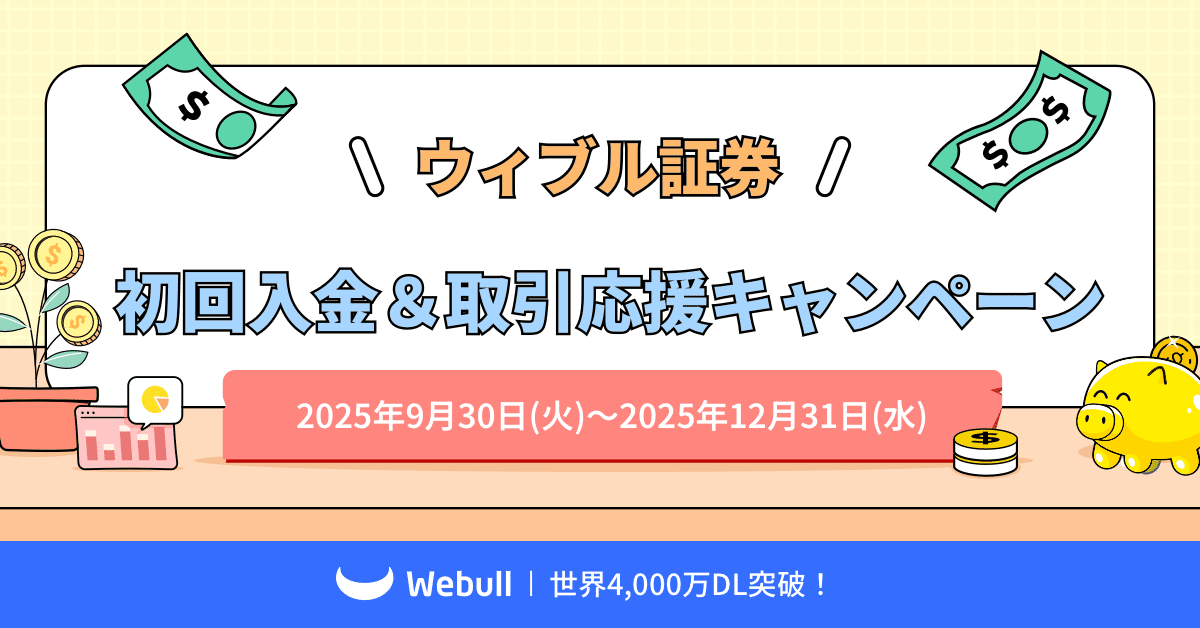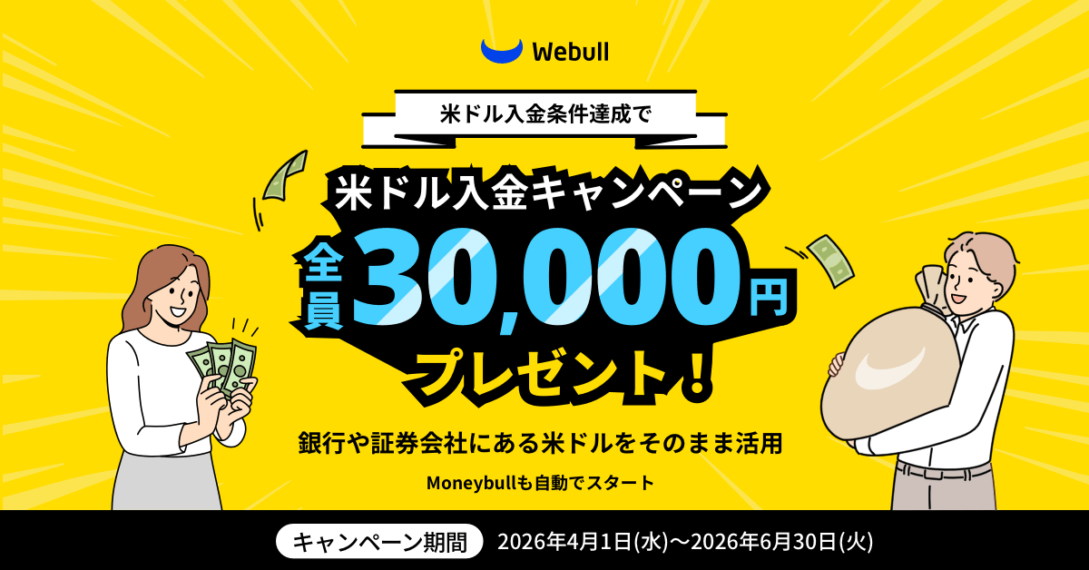 キャンペーン期間中、他社証券会社より米国株移管を完了すると6,000円の現金クーポンをプレゼントします!資産運用の重要なパートナーとして、ぜひウィブル証券をご利用ください。