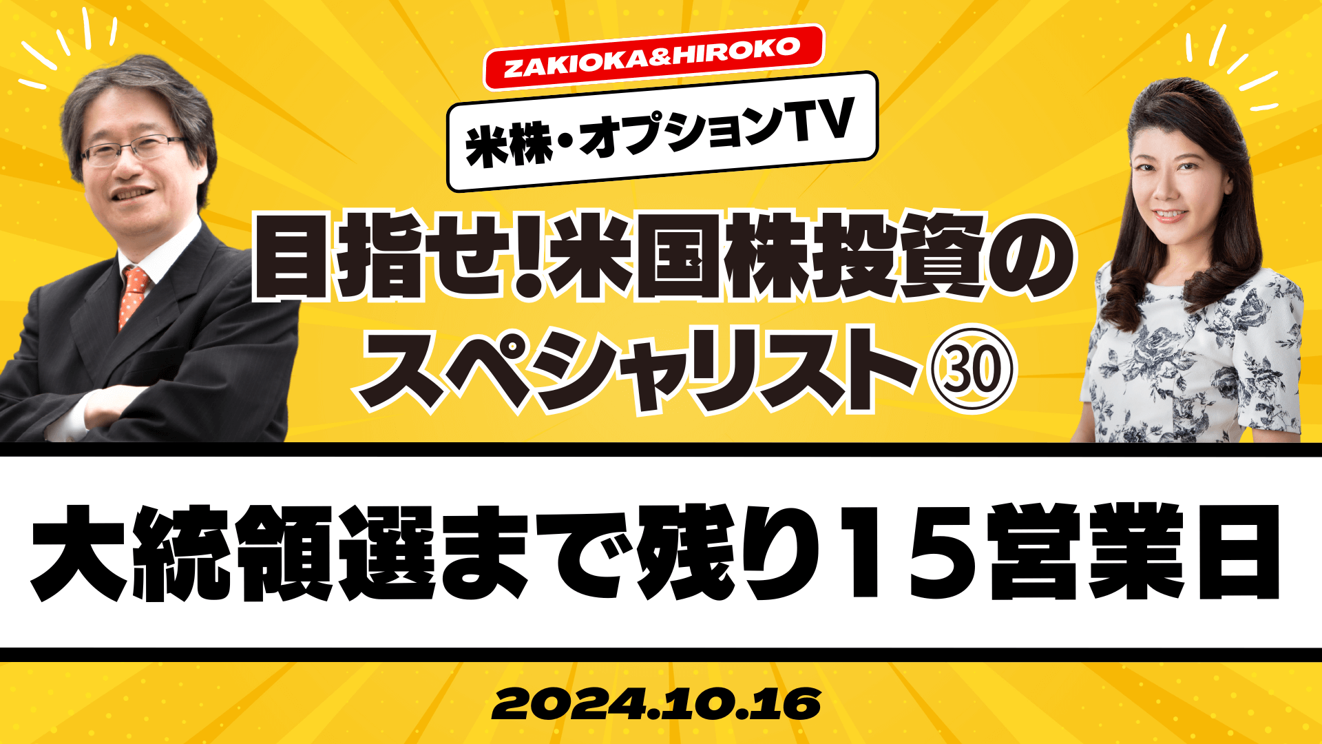 【目指せ!米国株投資のスペシャリスト(30)】『大統領選まで残り15営業日』[ザキオカ&ひろこの米株・オプションTV]
