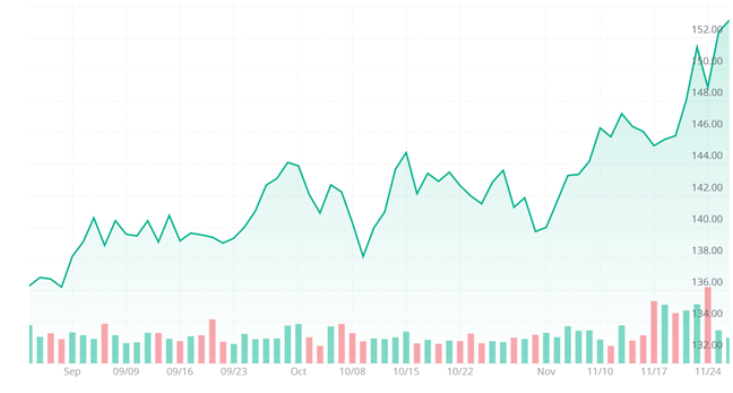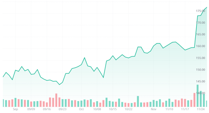 AI時代の主役に踊り出たエヌビディアですが、11月は、ハイパースケーラーによるデータサーバーへの過剰投資への懸念や、グーグルのTPUの台頭への懸念を背景に株価が軟調に推移しています。