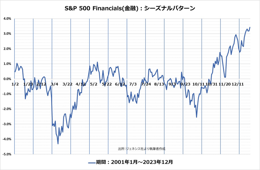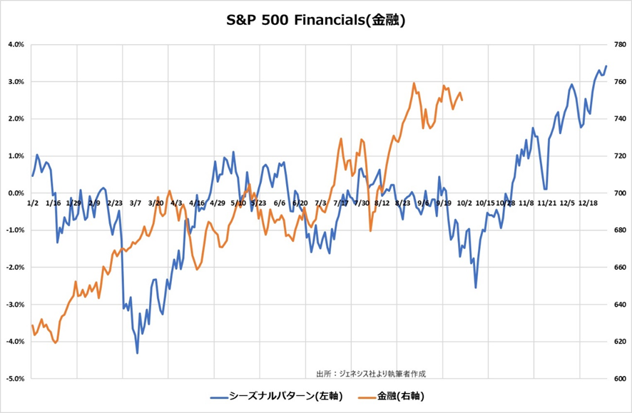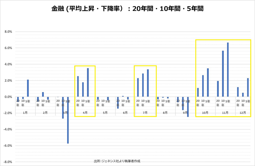 今回は、金融セクターの季節性パターン(シーズナルパターン)から投資タイミングを探ります。