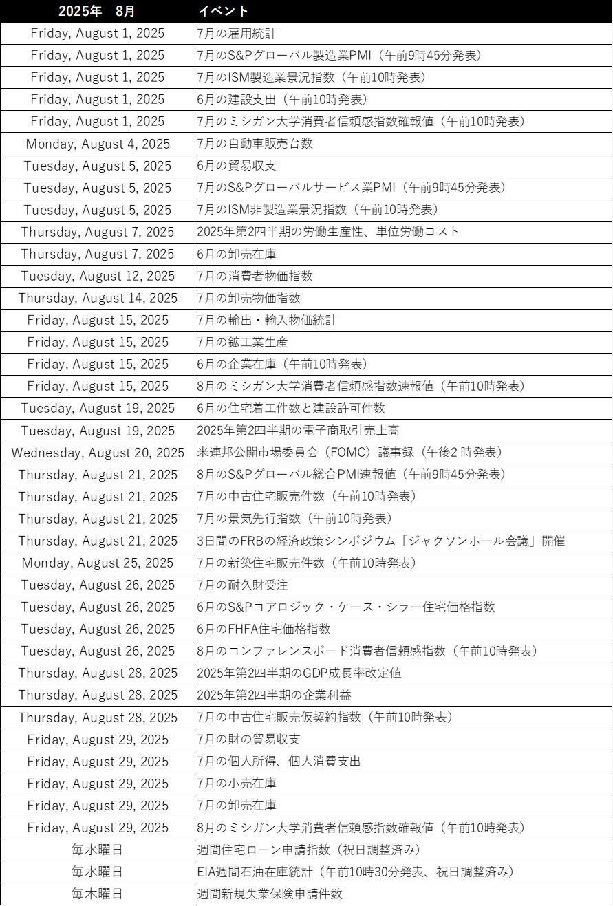 敗者は最高裁判所に上告するとみられます(トランプ政権には国家安全保障や通商の観点から関税措置を実施する複数の代替案があるようですが、その多くには制限があります)。8月に公表される経済指標も重要性を増しています。定量化された関税の影響が指標に反映される流れが続くとともに、米連邦公開市場委員会(FOMC)が0.25%の利下げを決断すると予想されています(パウエル氏はFOMCの議長職に留まるとみられています)。