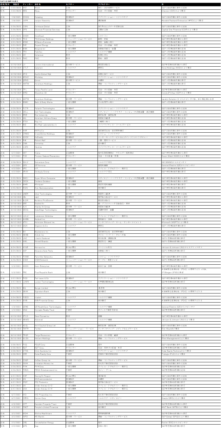 o S&P 500指数の時価総額は1兆2,370億ドル増加して(6月は2兆3,350億ドル増加)、53兆7,370億ドルとなり、年初来では3兆9,320億ドルの増加となりました。2024年通年で時価総額は9兆7,660億ドルの増加、2023年は7兆9,060億ドルの増加となり、2022年は8兆2,240億ドル減少しました。