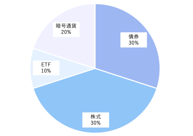 安全を期し、3,000ドルを地方債に、さらに3,000ドルを公共株に投資します。そして、S&P500指数に連動するETFに1,000ドルを投資します。残りの3,000ドルについては、1,000ドルを新興医療株に、2,000ドルを暗号通貨に投資します。